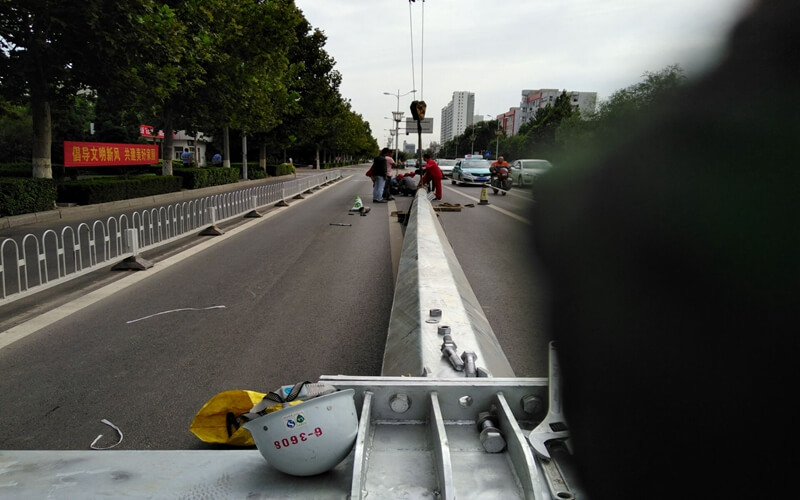 任丘市華北油田18米,20米,23米監(jiān)控桿安裝現(xiàn)場